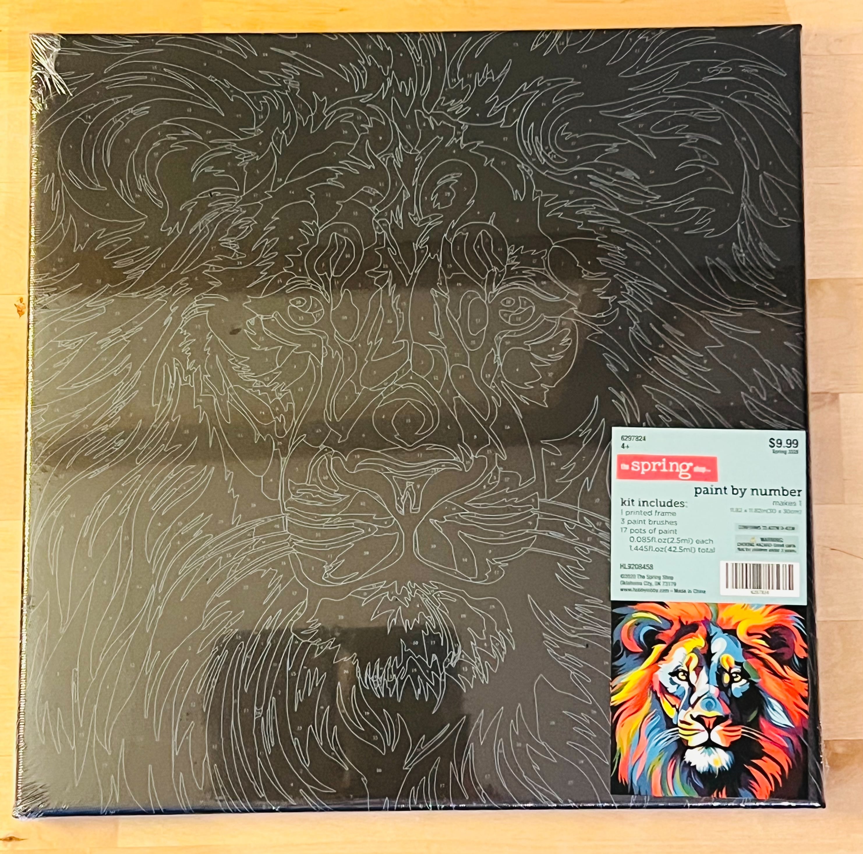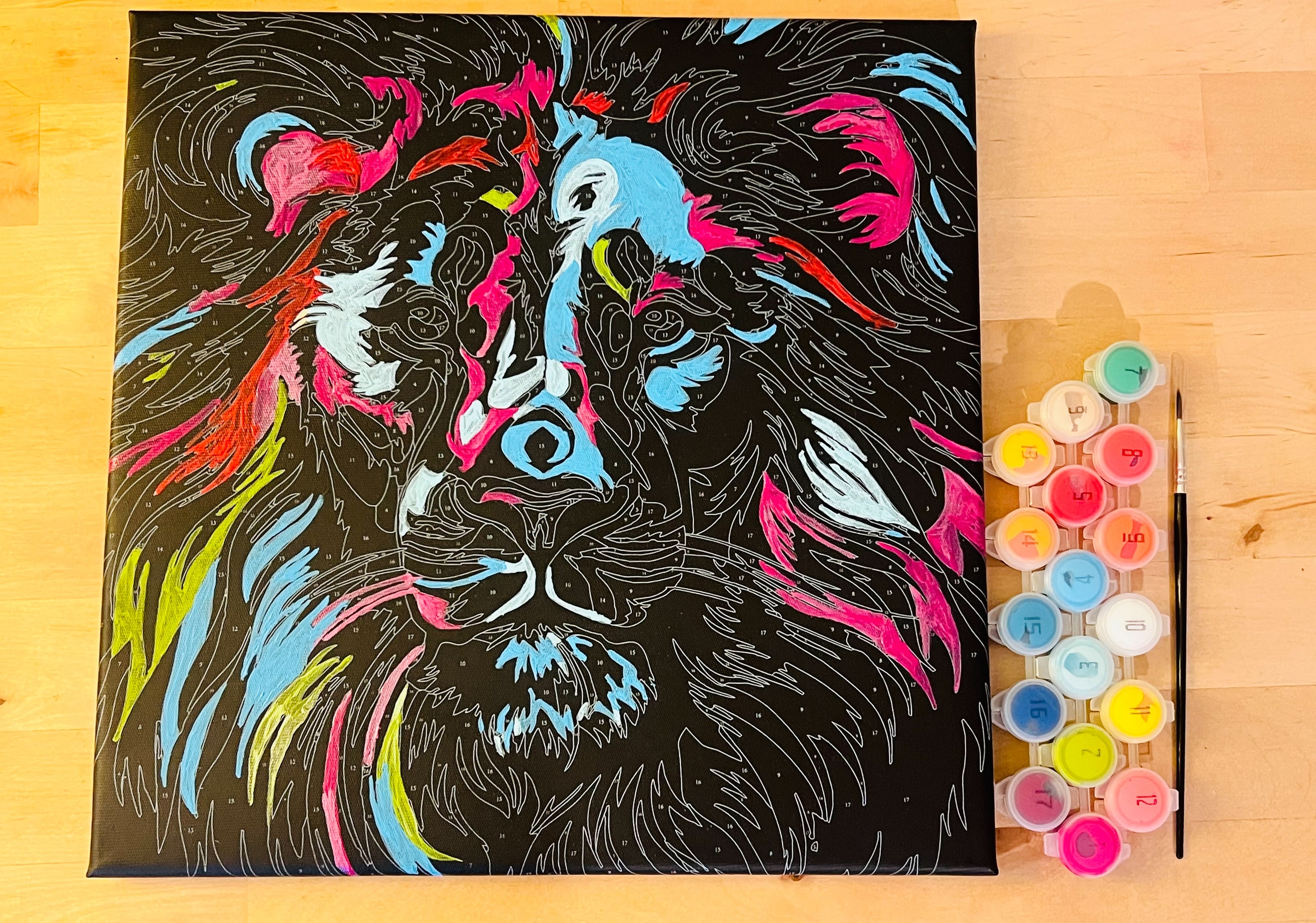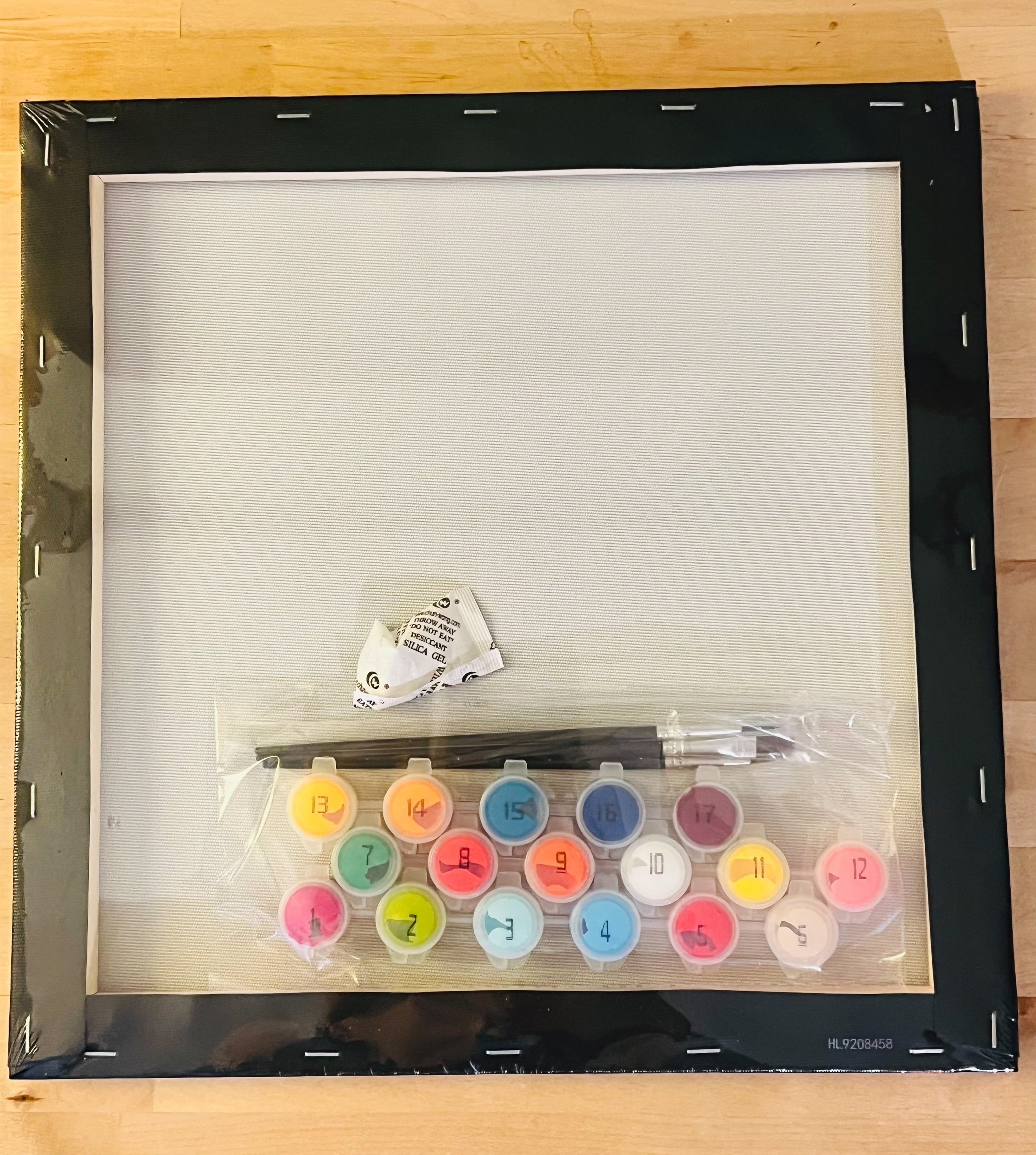 1プリント線入りフレーム 3ペイントブラシ カラー絵具x17ポット 30x30cm