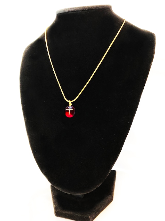 繊切りにしたした金箔を、十字架型に配置し、板ガラスの間に封印しています。
